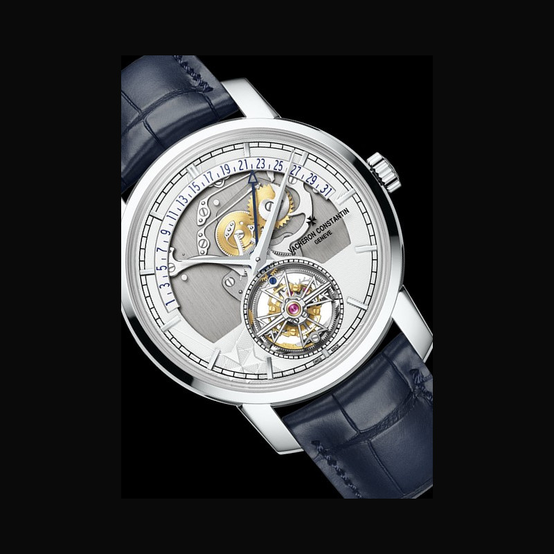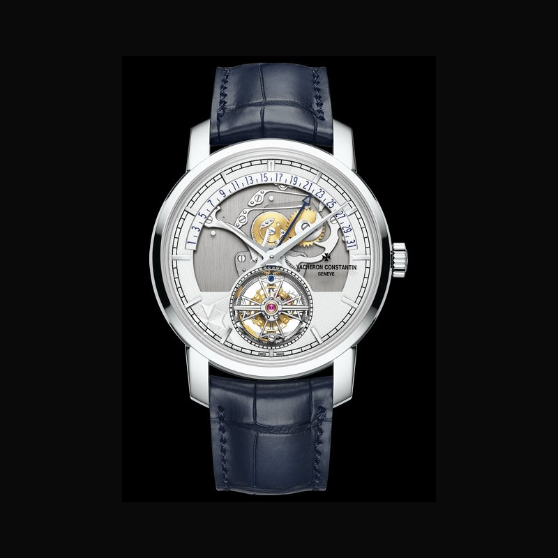 A reflection of watchmaking expertise: the openworked dial and retrograde display, representing two historical Vacheron Constantin signatures, are revisited within the Traditionnelle collection through three 370-piece limited editions in 950 platinum.