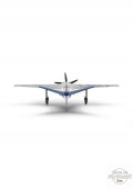While its cockpit is placed as far back as possible, evoking the high speed of dragsters, its short but broad wings, placed very far forward, hark back to the Comet DH.88, Hughes H-1 and the Bugatti-DeMonge 100P of the 1930s, but also the famed P51 Mustang of the 1940s. Its Y-shaped empennage ensures maneuverability, while making it immediately recognizable.