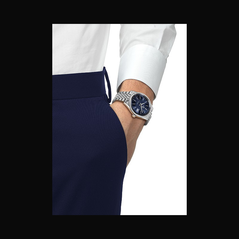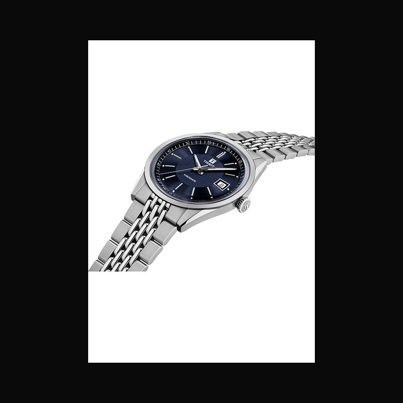Created for the rhythm of daily life, the Tissot Visodate remains remarkably wearable, just as it was when it first appeared more than seventy years ago. Its thin 39mm case sits lightly on the wrist, complemented by a box-shaped sapphire crystal that adds character while ensuring lasting durability. A see-through case back reveals the refined mechanics of the Powermatic 80 movement, offering up to 80 hours of autonomy. At its core, the NivachronTM balance spring enhances resistance to magnetic fields and temperature variations, preserving the watch’s precision over time.