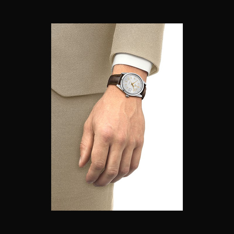 Created for the rhythm of daily life, the Tissot Visodate remains remarkably wearable, just as it was when it first appeared more than seventy years ago. Its thin 39mm case sits lightly on the wrist, complemented by a box-shaped sapphire crystal that adds character while ensuring lasting durability. A see-through case back reveals the refined mechanics of the Powermatic 80 movement, offering up to 80 hours of autonomy. At its core, the NivachronTM balance spring enhances resistance to magnetic fields and temperature variations, preserving the watch’s precision over time.
