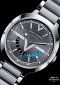 | + More characteristics : | Movement Automatic Movement GMT with disc display 42 hours of power reserve Case steel case with polished and brushed finish Dial Anthracite dial with blue and black GMT disc day and night indicator anthracite V bridge with brushed and polished finish anthracite domed and side curved index with brushed and polished finish Strap / Buckle Steel Stainless steel folding buckle |