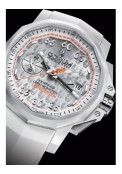 | More characteristics : | Movement Frequency 4 Hz. 28'800 vibrations/hour 27 jewels Rotor with CORUM dedicated decoration 48-hour power reserve Dial Tapestry pattern with Didier Cuche face Small seconds subdial at 9 o’clock 12 nautical pennants representing the hours appearing on the fitted flange. rimmed in orange Applied minutes numerals and chevrons 60-minute chronograph hand tipped with white Superluminova Orange-lacquered chronograph seconds with wit counterweight shaped like the CORUM key Cut-out Superluminova-tipped hours and minutes hands CORUM logo applied on the dial and LIMITED EDITION inscription Cambered twelve-sided sapphire crystal with anti-reflective coating White rubber strap. width 22/20 mm |