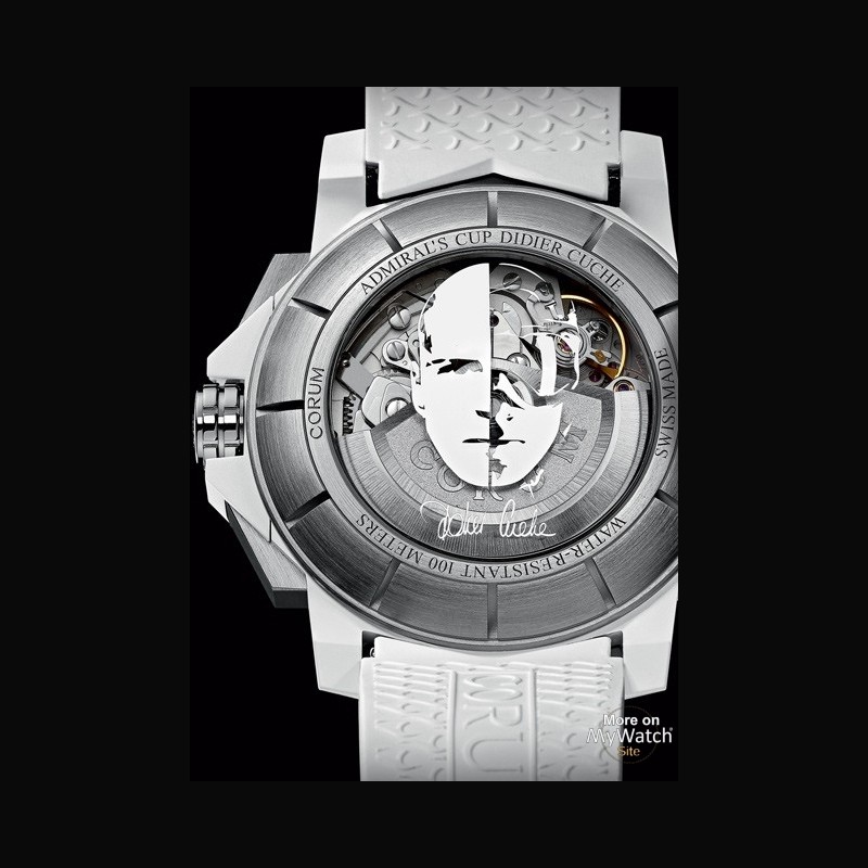 | Case peculiarity : | Screwed-down caseback Sapphire caseback Sapphire caseback with metallized Didier Cuche face motif Crown engraved with the CORUM key |