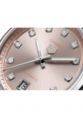 | Display : | Lilac flange with 60 second / minute scale Rhodium-plated faceted polished applied indexes; 11 diamonds of 180 mm diameter (022 cts) Rhodium-plated faceted polished hour and minute hands with white Super-LumiNova® Rhodium-plated polished central hand Rhodium-plated TAG Heuer applied logo 6 o’clock angled date “CARRERA” “AUTOMATIC” “SWISS MADE” printed |