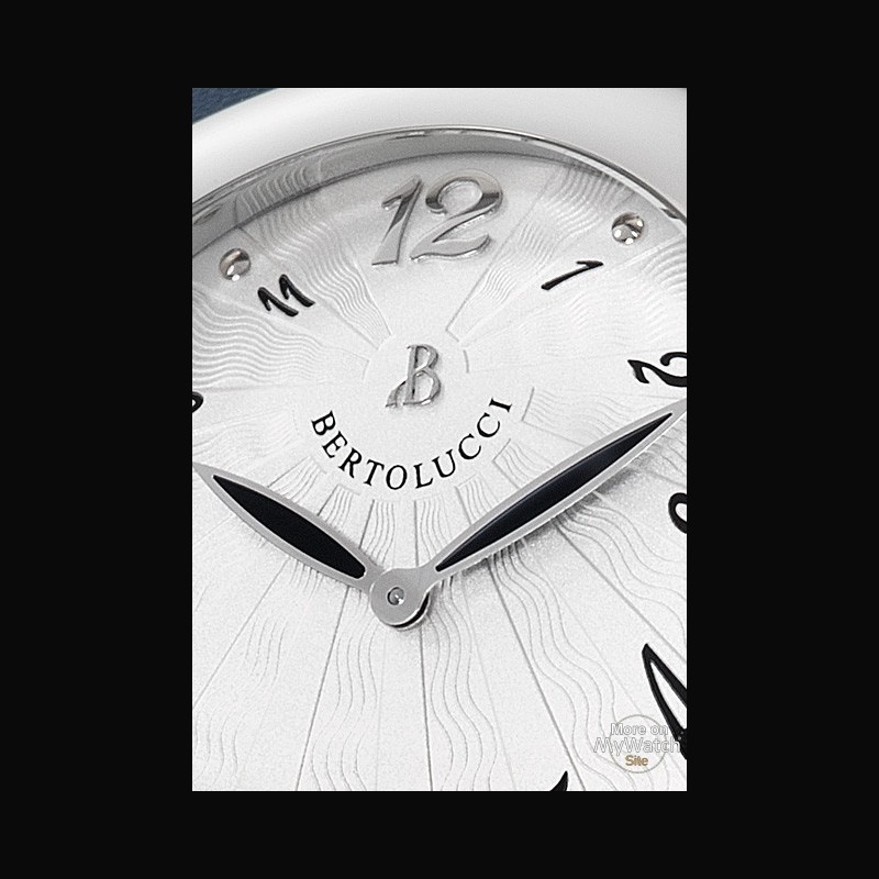 | More characteristics : | Case Stainless Steel all polished Dial Off-centred sunray pattern Battery life ≈ 50 months Bracelet Navy blue shiny alligator & mat calf leather strap with blue stitching |