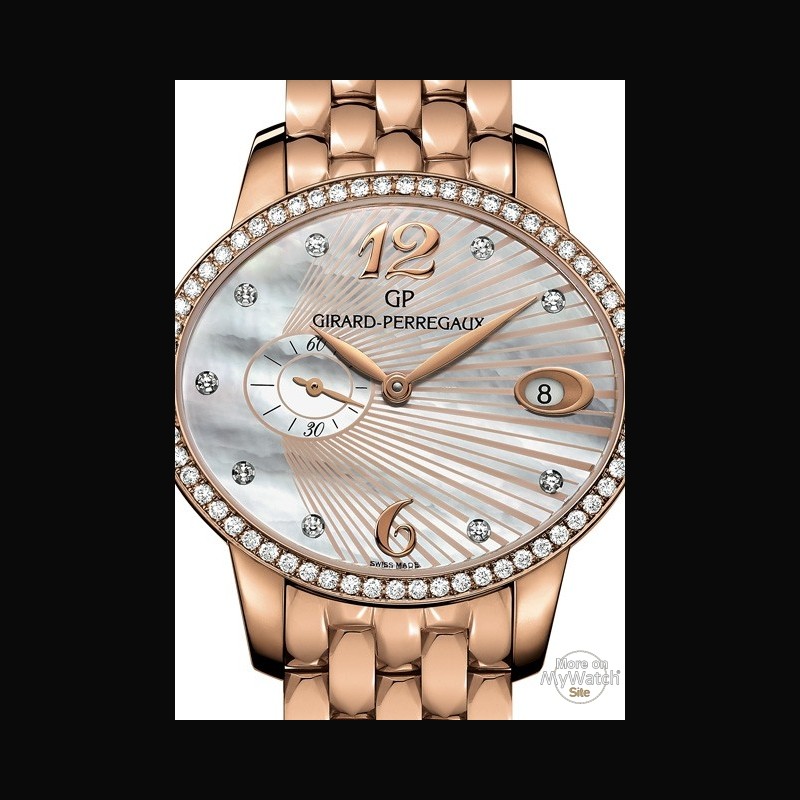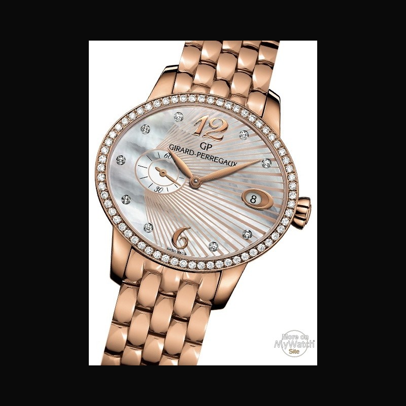 | More characteristics : | MOVEMENT GP03300-0044 Diameter: 25.60 mm (111/2 ’’’) Thickness: 3.20 mm Frequency: 28’800 Vib/h - (4 Hz) Power reserve: min. 46 hours Jewels: 28 CASE Crystal: anti-reflective sapphire Case-back: sapphire crystal. secured by four screws Setting of the bezel: 62 brilliant-cut diamonds. ~0.85 ct DIAL White mother of pearl dial. set with 9 diamonds index ~0.108 ct STRAP Pink gold buckle |