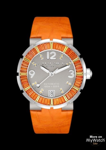 | Case peculiarity : | Unidirectional turning bezel Sapphire caseback Bezel set with baguette-cut orange and yellow sapphires |