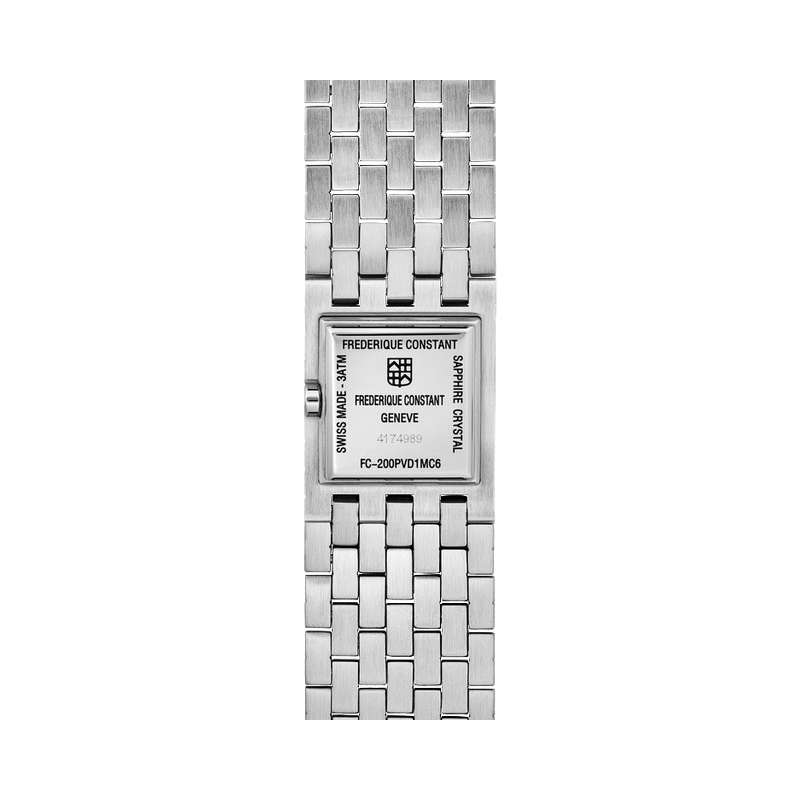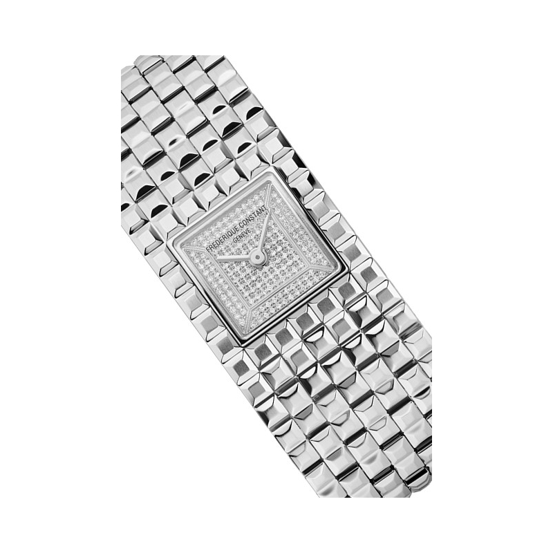 More characteristics : | Movement Caliber FC-200, quartz 60-month battery life, 4 jewels Case Polished stainless steel 2-part case Dial Dial adorned with 158 diamonds (0.23 carat) Bracelet / Buckles Brushed and polished with 7 links Clous-de-Paris stainless steel bracelet Folding buckle |