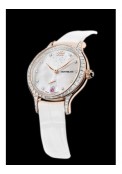 A consummately designed watch like this one is an ideal field on which jewelers can give free reign to their creativity and craftsmanship. This is especially true for the breathtaking and unique haute joaillerie watches, on which gemstone-specialists enjoyed nearly unlimited artistic freedom. Here they’ve been inspired by the love of flowers, for which Princess Gracia Patricia was famed, not solely because of her fantastic rose garden. Floral adoration is expressed in the one-of-a-kind “Pétales de Rose motif” model, on which countless rose-petal contours adorn a white mother-of-pearl dial and nestle closely side by side to form a precious white gold bracelet that scintillates with the gorgeous fire of 605 brilliant-cut diamonds weighing a total of ca. 6.09 carats. In the unique piece “Pétales Entrelacés motif,” the shape of rose petals appears in red gold indices on the dial and as perfectly interlaced red gold loops, which combine with 567 diamonds (ca. 6.842 ct) and twine around the wrist of the lucky lady who can call this watch her own. Each of these two unique timepieces has forty- four diamond baguettes around its bezel and 130 brilliant-cut diamonds along its dial’s flange, where they glitter under the protection of an overarching sapphire crystal.