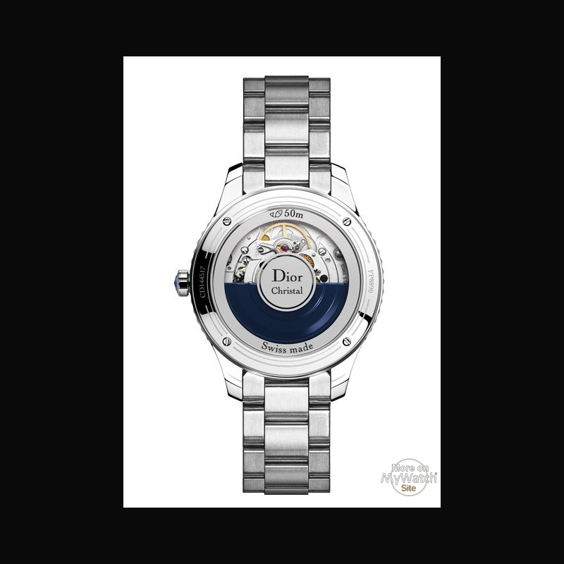 | + More characteristics : | Movement Blue lacquered oscillating weight 38-hour power reserve Dial Blue mother-of-pear Luminescent faceted hour and minute hands Central ring set with diamonds Unfolding steel clasp Gem-setting 34 diamonds (0.17 carat) |