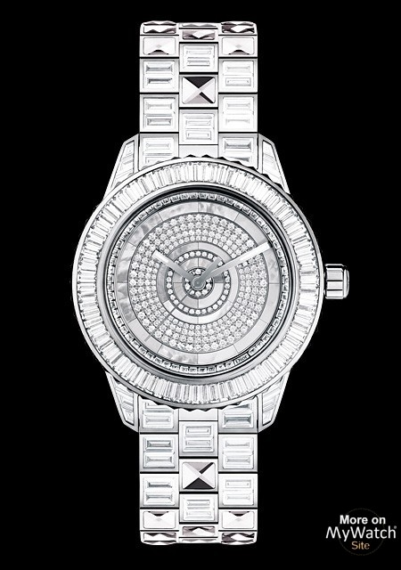 | Case peculiarity : | Sapphire caseback Grey metalized "Dior Christal" on the caseback Bezel and horns set with baguette diamonds Cronw set with a rose-cut diamond |