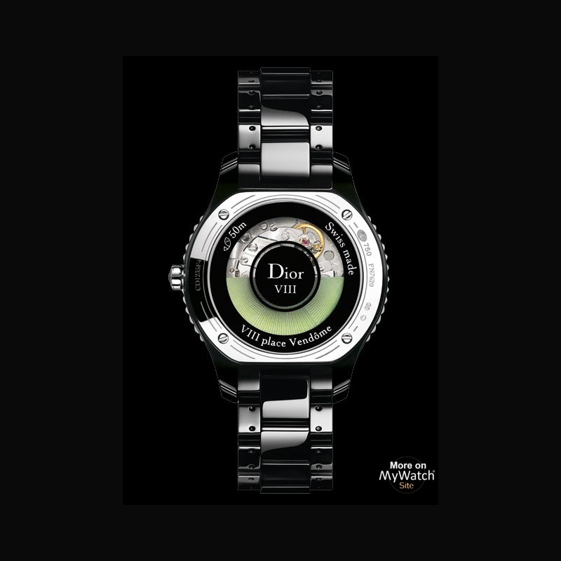 | Case peculiarity : | Sapphire caseback Crown set with a black ceramic insert Bezel set with baguette-cut peridots |