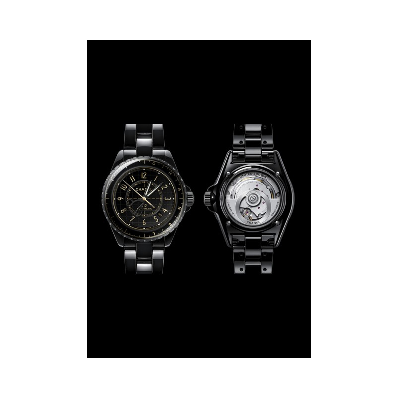 The new J12 COUTURE 38MM watch, in highly resistant black ceramic is equipped with the self-winding Caliber 12.1 movement. The dial is shaped like a couture pattern in gold and encircled by a tape measure motif. The time is indicated by a sewing needle and a pair of scissors.