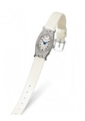 | + More characteristics : | Movement Caliber Longines proprietary dating from the 1970s Caliber L805 5¾ lines 17 jewels Frequency : 21.600 vibrations per hour Power reserve of 28 hours Case 18K white gold case Set with 42 diamonds Top Wesselton VVS (0.353K) Case and case back decoration engraved by hand Reproduction of a Longines jewellery watch from the 1920s |