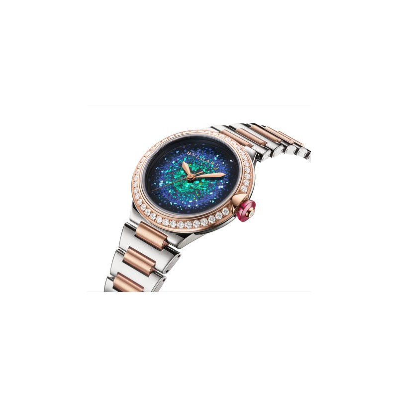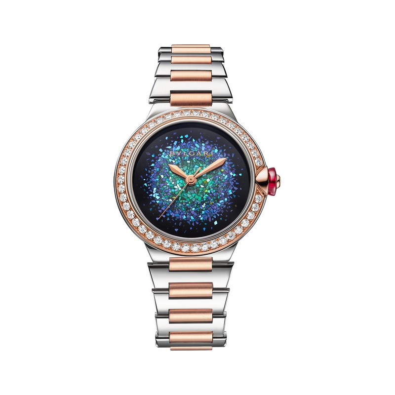 Introduced in 2014, Lvcea is an emblem of luminous femininity, playing with the brilliance of steel, the warmth of rose gold, and the sparkle of diamonds encircling the dial. Both a horological creation, with its automatic movement, and an artistic one, Lvcea has long embraced the métiers d’art, as a canvas for colorful mosaics of mother-of-pearl or deep-green malachite.