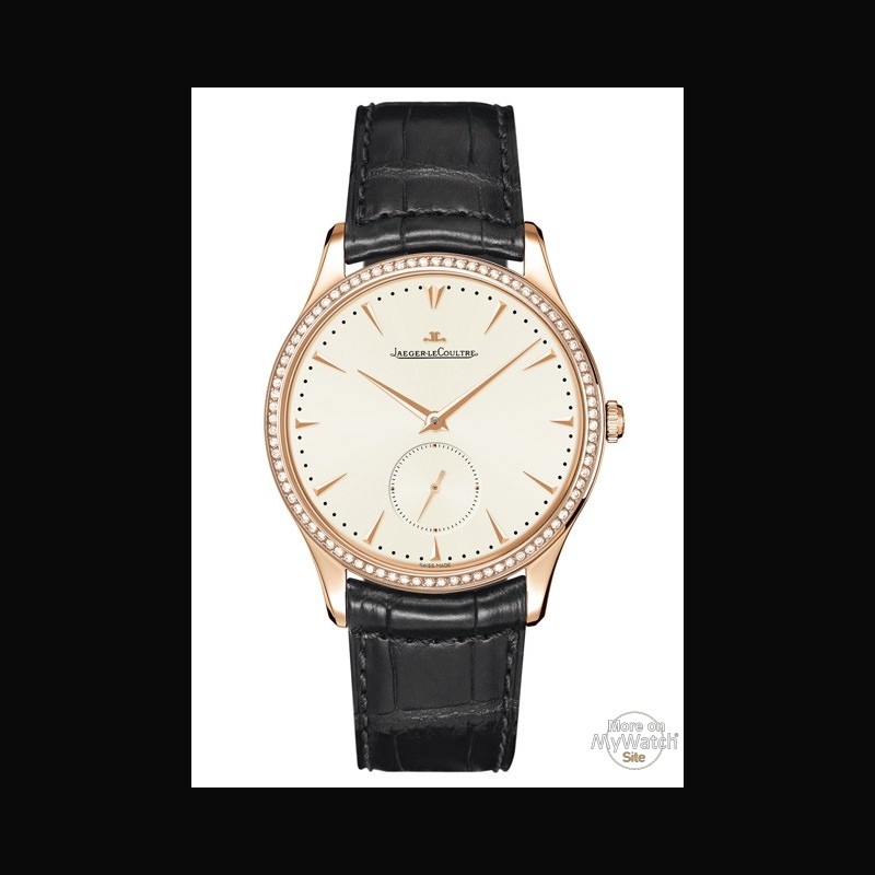 | More characteristics : | Movement Mechanical automatic. Jaeger-LeCoultre Calibre 896. Crafted. assembled and decorated by hand 28.800 vibrations per hour 43-hour power reserve 242 parts 34 jewels 3.98 mm thick 18-carat pink gold case Gem-setting on the bezel : Diamond : ~84 . ~0.6 carats Dial Frosted minute scale |