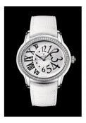 | + More characteristics : | Movement Total diameter: 11.75 lignes (26.60 mm) Casing-diameter: 11.50 lignes (26 mm) Thickness: 3.25 mm 32 jewels Rotor mounted on a ball-bearing mechanism with a 21-carat gold segment Power reserve: up to 40 hours Cadence of the balance: 28.800 vibrations per hour Adjustable inertia balance Finishing: all parts decorated by hand; circular-grained plate. diamond-polished countersinks. angles and sinks; bridges bevelled. snailed and adorned with a “côtes de Genève” motif Case Satin-brushed and polished stainless steel featuring bezel set with 66 brilliant-cut diamonds (~ 0.62 carats) Polished stainless steel crown set with a translucent sapphire cabochon (~ 0.25 carats) Back engraved with the Millenary logo Dial Dial with two zones Light silvery base adorned with a flinqué motif bearing black Roman numerals. and a light silvery satin-brushed sunburst offset disc with black Arabic numerals Strap Matt white crocodile leather with tone-on-tone stitching Polished steel double-blade AP folding clasp |