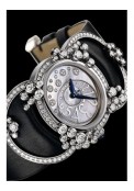 | + More characteristics : | Movement Cadence of the balance: 21.600 vibrations per hour (3 Hz) Finishing: all parts decorated by hand 18-carat white gold case set with 187 diamonds (~ 2.35 carats) Caseback engraved with the Millenary logo Dial White mother-of-pearl with applied gold cabochons and Arabic numerals Diamond-set inserts Technological satin strap |