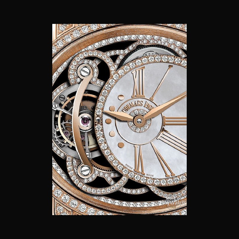 | More characteristics : | MOVEMENT Hand-wound Manufacture Calibre 2940 Total dimensions: 35.10 x 30.10 mm (15 1/2 x 13 1/4 lines) Total thickness: 7.10 mm Number of jewels: 19 Number of parts 190 Minimal guaranteed power reserve: 72 h Frequency of balance wheel: 3 Hz (= 21.600 vibrations/hour) CASE 18-carat white gold case. entirely set with baguette-cut diamonds Glareproofed sapphire crystal and caseback DIAL White mother-of-pearl dial. diamond-set pink gold rings Pink gold applied Roman numerals and points BRACELET “Large square scale” shimmering brown alligator strap Diamond-set 18-carat pink gold AP folding clasp Additional black alligator strap GEMSETTING Case and buckle: 424 brilliant-cut diamonds ~3.95 carats Rings: 151 brilliant-cut diamonds ~0.41 carats Movement: 213 brilliant-cut diamonds ~0.25 carats |