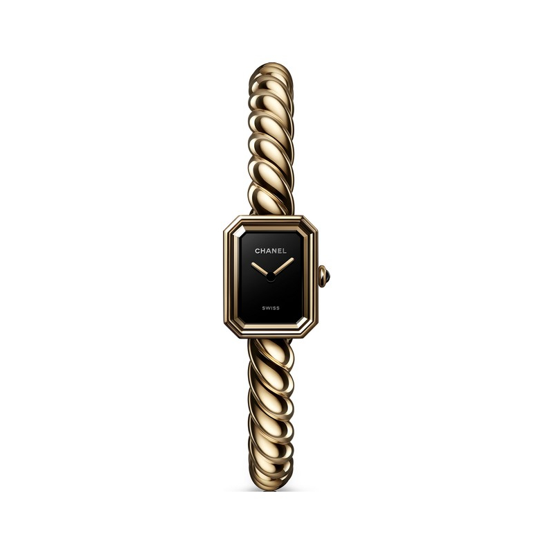 The PREMIÈRE GALON bracelet is a bangle made of a twisted braid that offers a new way of wearing. This 18-carat yellow gold bracelet highlights the purity of the black lacquered dial freed of indicators. And because there are as many braids as there are versions of the CHANEL suit, the PREMIÈRE GALON is also available in two versions adorned with diamonds. Retaining its resolutely couture spirit, this precious interpretation of the PREMIÈRE watch enters the world of jewelry.