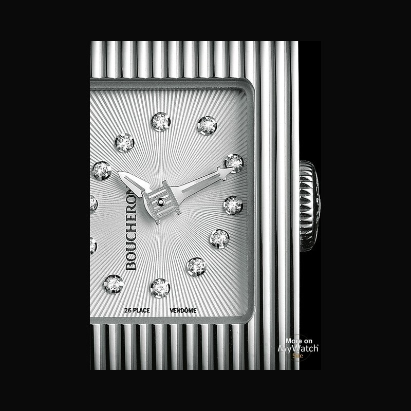 | + More characteristics : | Stamped silver dial with sunray effect set with 12 diamonds in an ellipse and “26. Place Vendôme” signature at 6 o’clock Interchangeable steel or gold bracelets and leather or fabric straps |