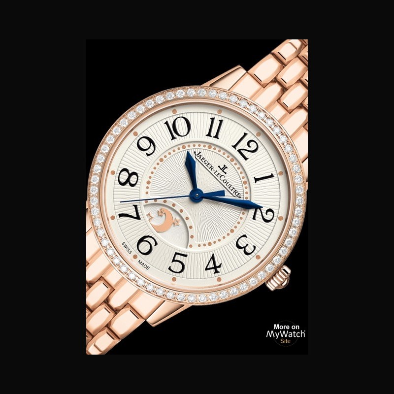 Its femininity is conveyed through every detail of its graceful silhouette. The perfectly matched case and dial provide the perfect backdrop for the mechanical movement. The automatic calibre entirely developed, crafted and assembled in the Jaeger-LeCoultre workshops stages a day/night indicator amid a hand-guilloché décor reflecting the finest Haute Horlogerie traditions. Time serenely takes its place, bathed in the glow of the diamond-set bezel that illuminates each passing moment.