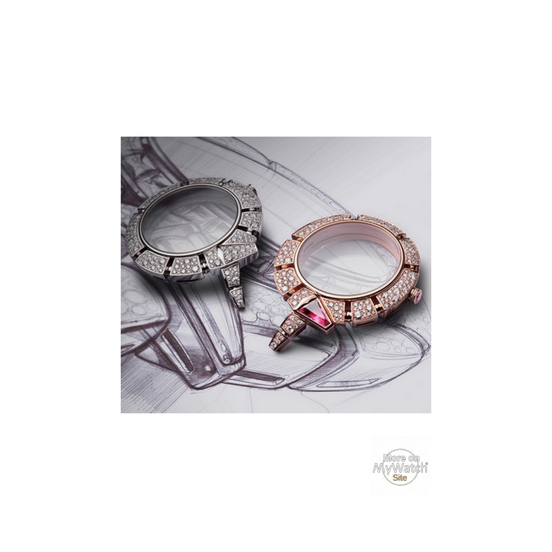 This precious and refined watch testifies to the high degree of technical mastery cultivated by the master artisans in Bulgari’s High Jewellery ateliers. The finesse and the quality of the gemsetting, as well as the ways in which the stones are assembled and adjusted, are truly remarkable. One also notes the amazingly flexible feel of the gemset bracelets that are extremely pleasant to wear, since Bulgari focuses on achieving a distinctive sensuality for its jewellery that makes each piece supremely comfortable as well as radiant. The snake’s tail flows over the wrist and coils around it with supple grace, testifying to the flexibility and sense of movement characterising Bulgari jewellery creations.