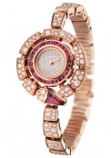 | More characteristics : | Movement Bulgari personalised quartz movement, adorned with the Bulgari logo (B033) Case and Bracelet 18ct pink gold set with 219 brilliant-cut diamonds (~7.68 cts), 30 baguette-cut rubellites (~1.20 ct) and 1 rubellite (~1.02 ct) Dial Snow-set with 116 brilliant-cut diamonds (~0.26 ct) |