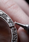 This precious and refined watch testifies to the high degree of technical mastery cultivated by the master artisans in Bulgari’s High Jewellery ateliers. The finesse and the quality of the gemsetting, as well as the ways in which the stones are assembled and adjusted, are truly remarkable. One also notes the amazingly flexible feel of the gemset bracelets that are extremely pleasant to wear, since Bulgari focuses on achieving a distinctive sensuality for its jewellery that makes each piece supremely comfortable as well as radiant. The snake’s tail flows over the wrist and coils around it with supple grace, testifying to the flexibility and sense of movement characterising Bulgari jewellery creations.