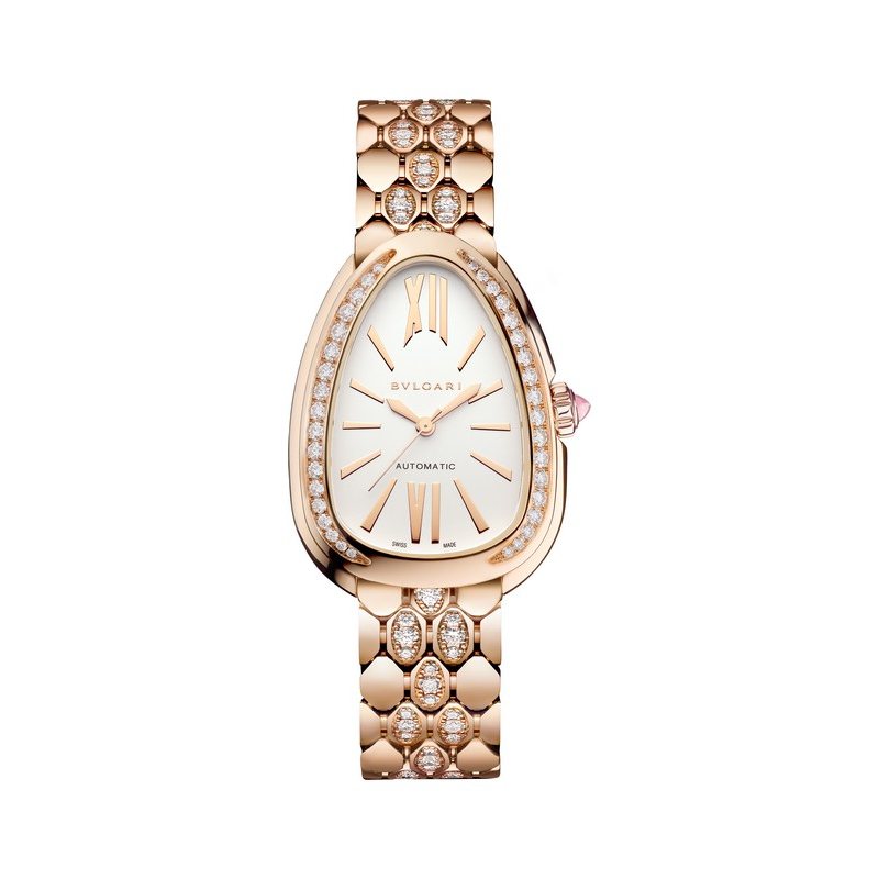 The Tubogas Manchette and the Serpenti Seduttori harbor the Lady Solotempo Automatic BVS100, which was unveiled last year. The Lady Solotempo Automatic—indicating hours, minutes, and seconds—combines the art of timekeeping with Italian allure, an ideal pairing with jewelry watches.