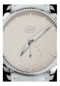 | More characteristics : | Movement 42-hour power reserve Calibre 13 ¼ ''' – Ø 30 mm. thickness 2.6 mm Frequency: 3 Hz – 21.600 Vib/h 29 jewels 1 barrel Number of components: 145 'Côtes de Genève' decoration Oscillating micro-weight made from 950 platinum Cases 3-part round case Material: 18 ct rose gold and white gold. Polished finish Bezel set with 84 'Brilliant' cut diamonds. Ø 1.20 mm (Top Wesselton. VVS. ~ 0.65 ct) Crowns: Ø 5 mm Case-back with sapphire crystal Individual number engraved on the case-back Dials Grained white and black dials Diamond-polished appliques Delta-shaped hands with luminescent coating Straps Hermès alligator strap with 18 ct rose gold and white gold ardillon buckle. polished finish |